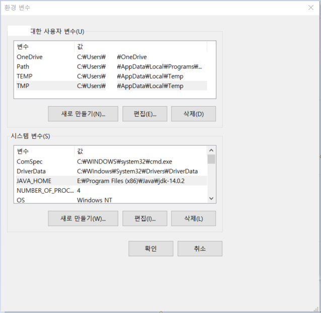 3) 사용자 변수와 시스템 변수가 있는데 사용자 변수는 현재 로그인 된 윈도우 계정에서만 사용가능한 설정이며