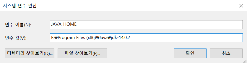 4) 변수이름은 JAVA_HOME을 입력하고 변수값엔 실제 자바가 설치된 경로를 입력한다