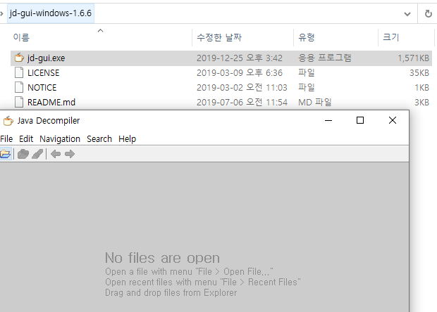 이제 마지막단계이다 이 jar파일을 보기 위해서 jd-gui라는 프로그램을 사용한다