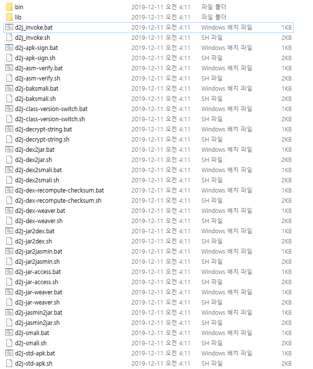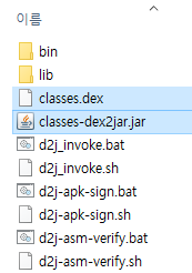 이때 우리가 사용할 것은 d2j-dex2 jar.bat라는 파일이다