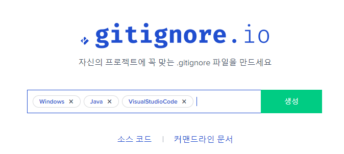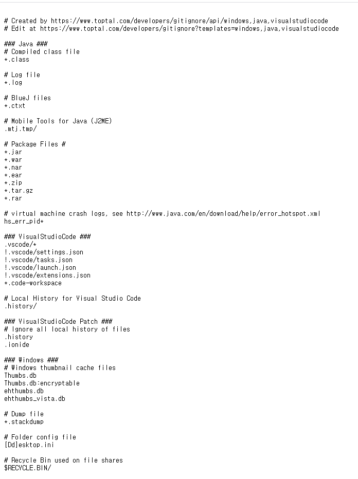 위 페이지에서 gitignore를 자동생성해준다