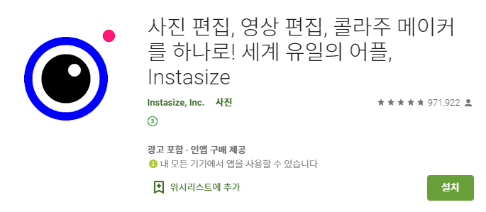 이때 주변에 물어보게되어 '인스타사이즈' 라는 앱을 알게되었고 이 앱은 사진이 잘리지 않고 1:1비율로 변경시켜주는 기능이 메인이였다