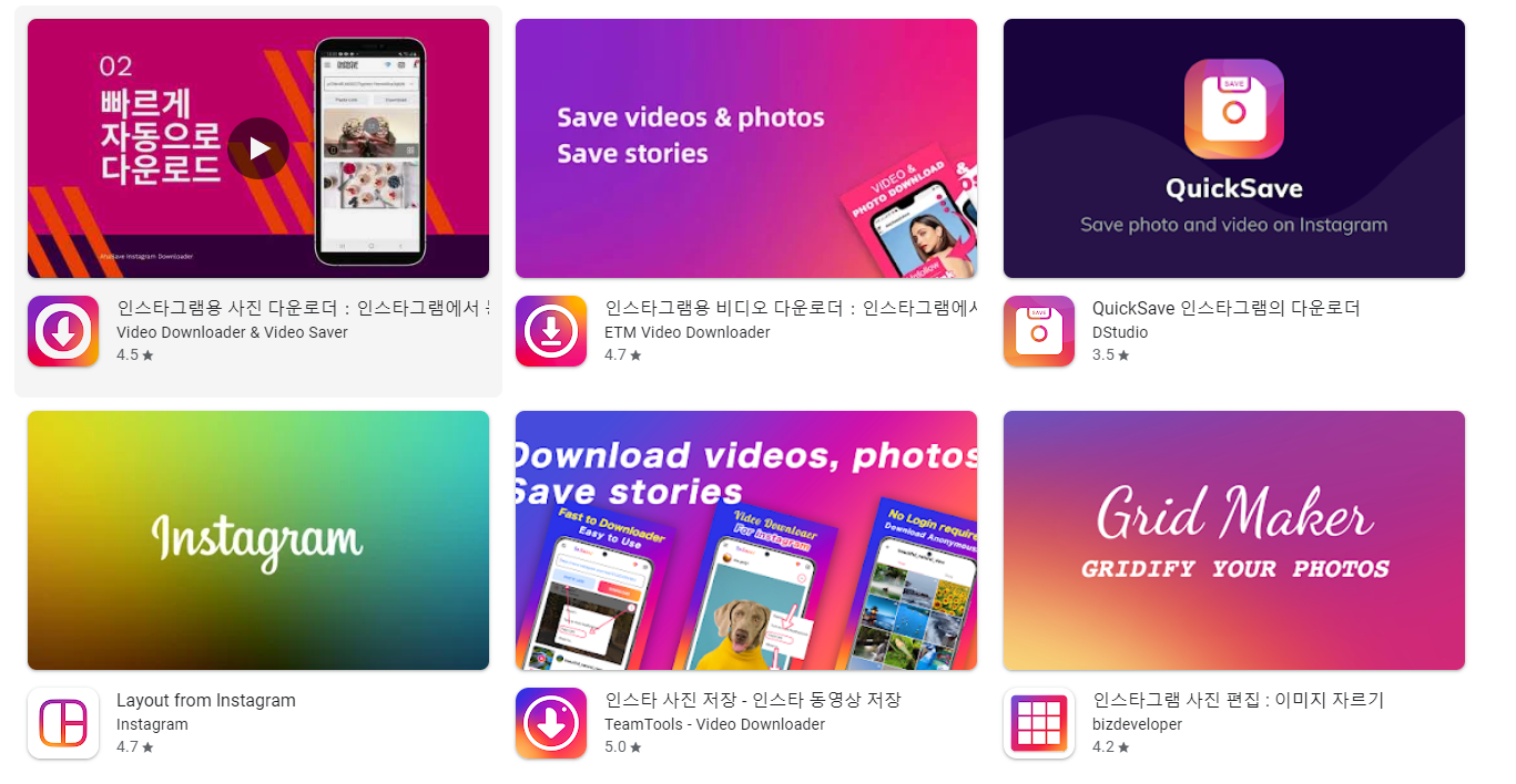 타 앱들은 앱 명에 insta가 들어가거나 색깔컨셉을 빼껴놓은것들도 수 없이 많은데...
