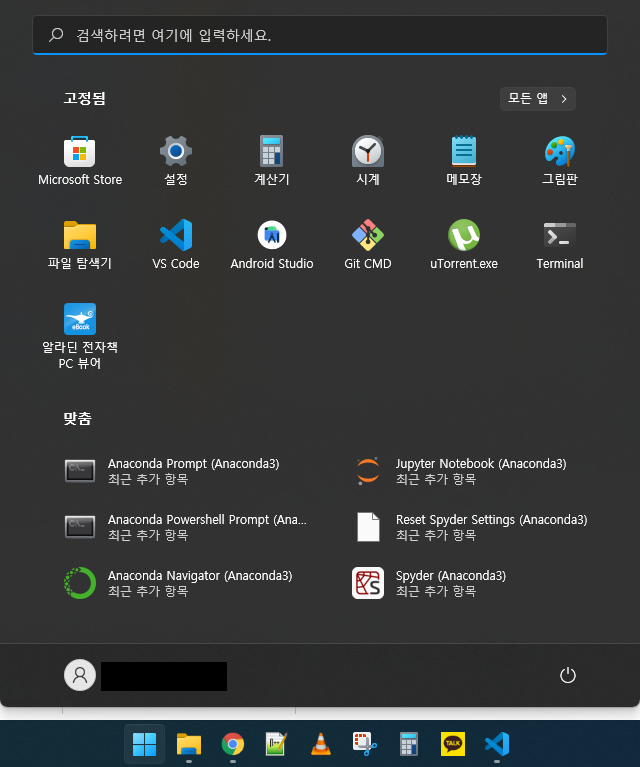 시작 버튼을 누르면 좀 더 모바일 앱들처럼 자주 사용하는 실행파일을 모아놓고 사용하기 더 편리합니다