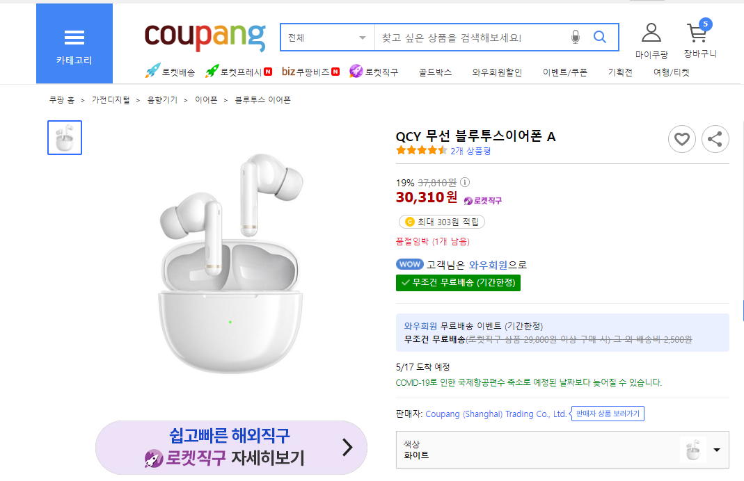 그리고 QCY에서 나온 가성비 상위 세대 제품을 찾아보다가 qcy t11모델을 보다가 QCY에서도 노이즈캔슬링이 되는 제품이 있다하여 알아보게된 HT03 가격이 고작 3만원초반(구매 당시 쿠팡가격 30470) 인터넷을 더 찾아보니