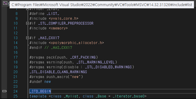 해당 에러 내용을 visual studio에서 더블클릭해서 따라가 봤다