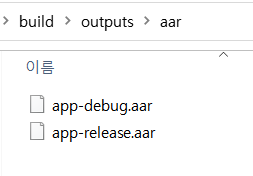 aar은 빌드를 하면 debug버전으로 빌드된다