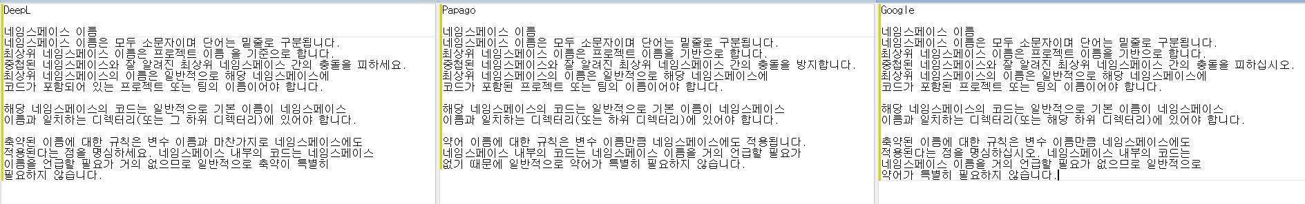 거의 비슷하게 번역되나 "변수 이름과 마찬가지로" 부분을 구글이나 파파고는 "변수이름만큼"이라고 어색하게 해석된 차이가 눈에 보였다