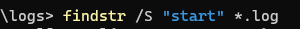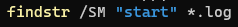 이런 식으로 start라는 내용이 있는 log확장자의 파일을 모두 검색하면