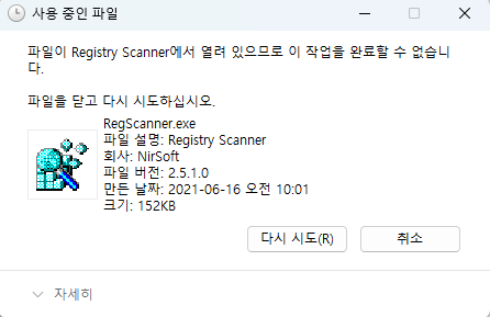 종종 윈도우 탐색기에서 파일이나 폴더를 삭제하려고 하면 '사용 중인 파일'이라고 뜨면서 열려있으므로 작업을 완료할 수 없습니다.라는 메시지가 뜬다.