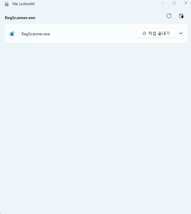 다음과 같이 File Locksmith 창이 뜨고 해당 파일 혹은 폴더를 물고 있는 프로세스목록과 바로 강제종료까지 가능하다