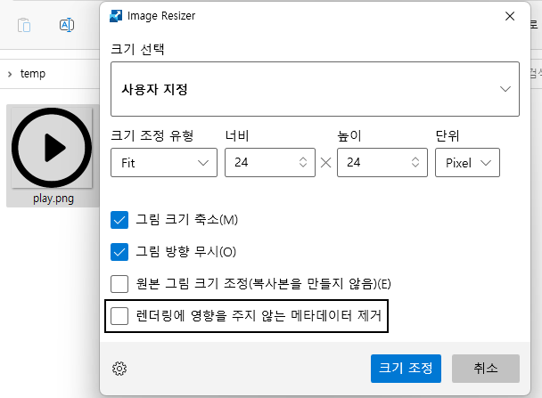 우클릭 그림 크기 조정 선택