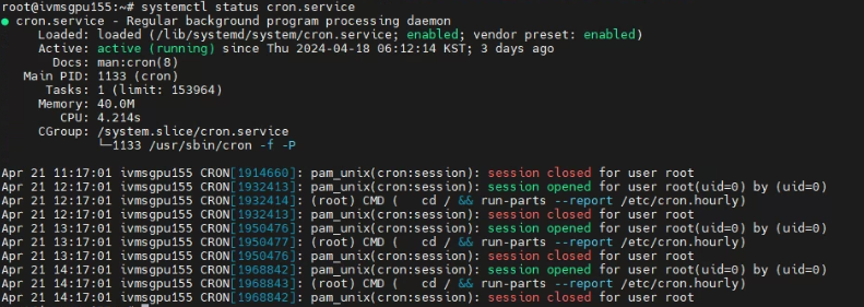 리눅스에서 서비스의 상태를 확인하면 아래에 최신로그의 일부가 나온다 이를 확인하는 방법이다.
