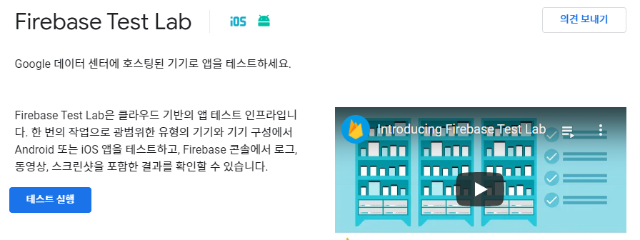 참고 : https://firebase.google.com/docs/test-lab?hl=ko