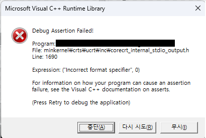 MFC에서 문자열을 변환하는 과정에서 Runtime Exception 이 발생했고 내용은 위와 같았다