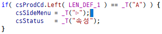 csSideMenu 변수 라인에서 발생한 에러였고 세미콜론 뒤에 뭔가 있나 싶어서 확인해 보았지만 아무런 문자가 없었다.