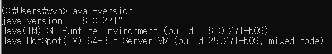 자바 설치 후 cmd창에서 java -version 명령으로 설치된것을 확인하고