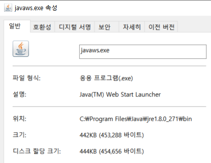 "[설치된경로]\jre1_8.버전\bin\javaws.exe" 파일이다