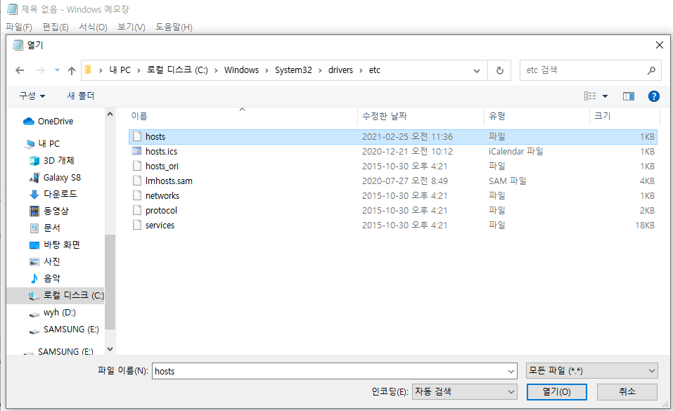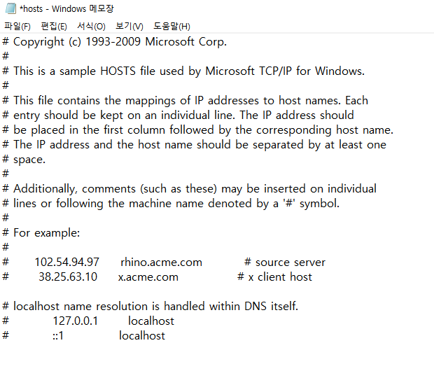 이를 관리자 권한을 받은 메모장을 켜서 열어보자