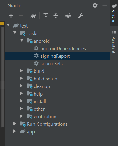 2. Tasks -> android -> signingReport를 더블클릭하면