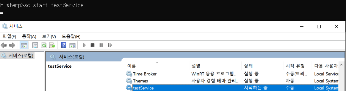 //auto : 자동, disabled : 사용안함, delayed-auto : 자동(지연된 시작), demand : 수동